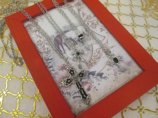 Biżuteria sztuczna, NOWA!!! Zestaw łańcuszków z zawieszkami krzyżyki różne Kolory: srebrny, czarny Cena za ...