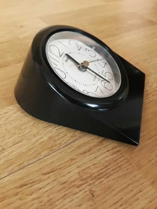 Zegar biurkowy REIDA w czarnej oprawie. Analogowy, z mechanizmem kwarcowym - średnica tarczy ok. 7,5 cm. Prosty i funkcjonalny design, idealny jako dodatek do biurka lub na półkę, można też go zawiesić. Zasilanie: 1 bateria paluszek AA.Benek